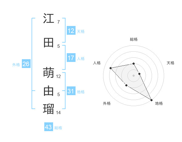 江田 萌由瑠さんの総格は43画の2点!