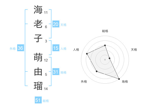 海老子 萌由瑠さんの総格は51画の3点!
