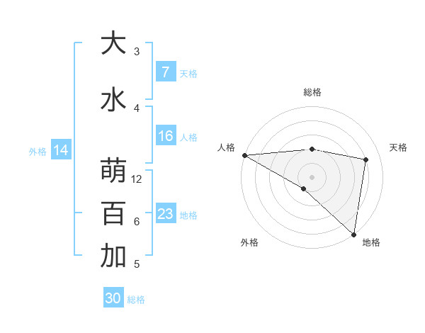 大水 萌百加さんを姓名の画数から五運を鑑定