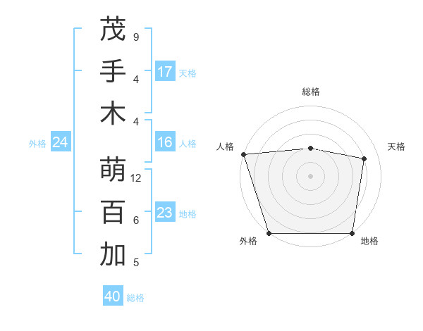 茂手木 萌百加さんを姓名の画数から五運を鑑定