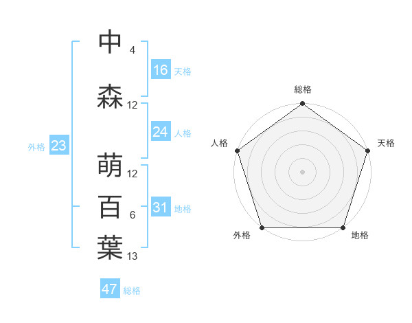 中森 萌百葉さんを姓名の画数から五運を鑑定