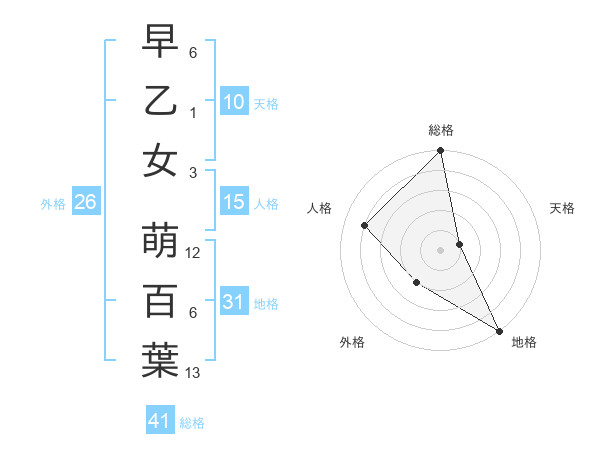 早乙女 萌百葉さんを姓名の画数から五運を鑑定