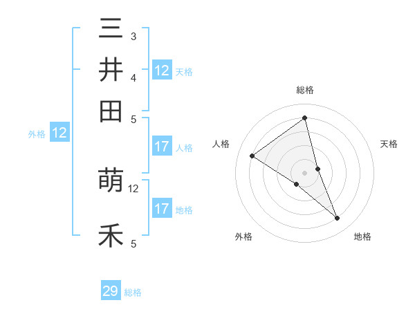 三井田 萌禾さんの地格は17画の4点!