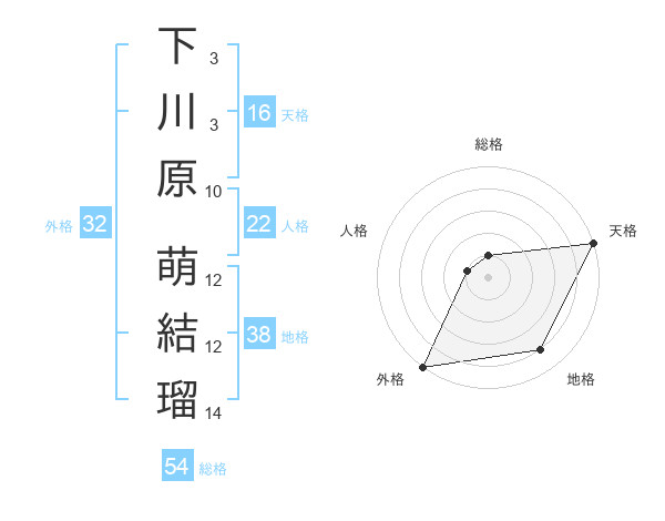 下川原 萌結瑠さんを姓名の画数から五運を鑑定