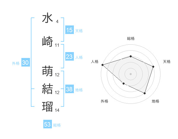 水崎 萌結瑠さんの総格は53画の3点!