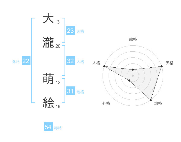 大瀧 萌絵さんを姓名の画数から五運を鑑定
