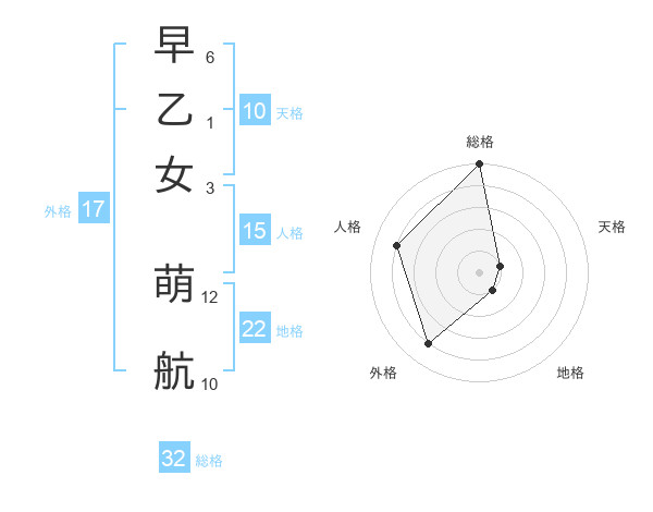 早乙女 萌航さんを姓名の画数から五運を鑑定