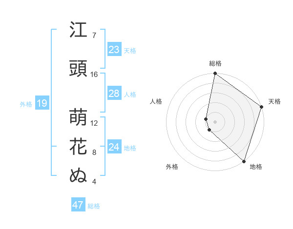 江頭 萌花ぬさんを姓名の画数から五運を鑑定