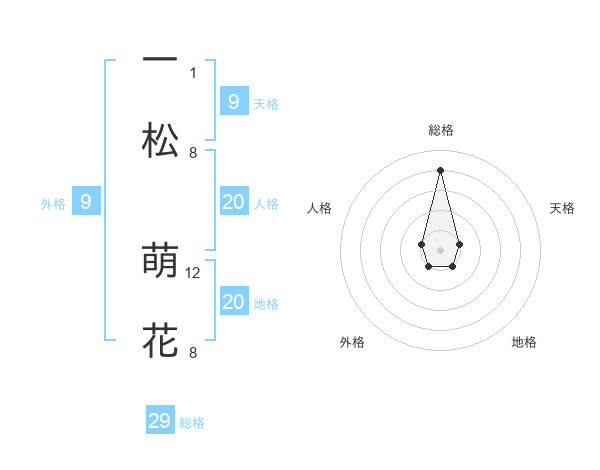 一松 萌花さんの総格は29画の4点!