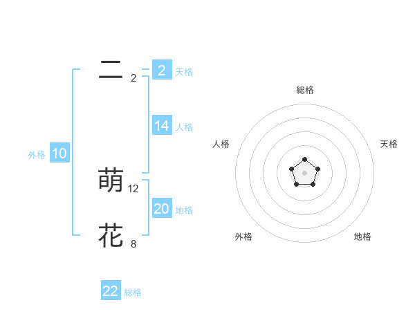 二 萌花さんの総格は22画の1点!