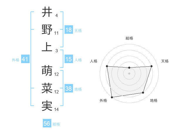 井野上 萌菜実さんを姓名の画数から五運を鑑定