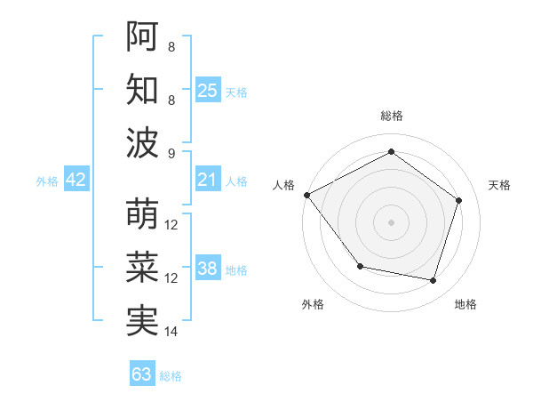 阿知波 萌菜実さんの総格は63画の4点!