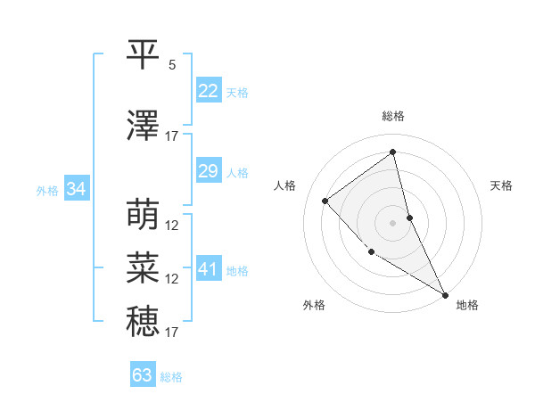 平澤 萌菜穂さんの外格は34画の2点!