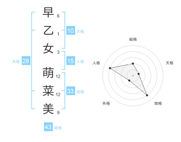 早乙女 萌菜美さんを姓名の画数から五運を鑑定