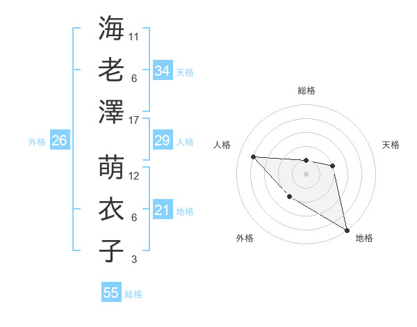 海老澤 萌衣子さんの天格は34画の2点!