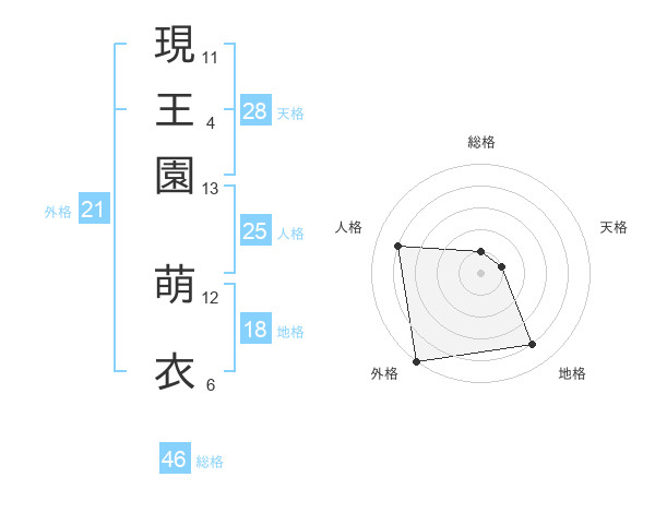 現王園 萌衣さんを姓名の画数から五運を鑑定