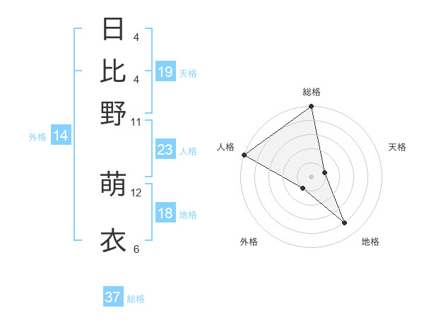 日比野 萌衣さんの総格は37画の5点!
