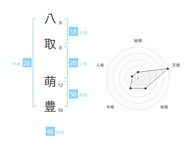 八取 萌豊さんの総格は46画の1点!