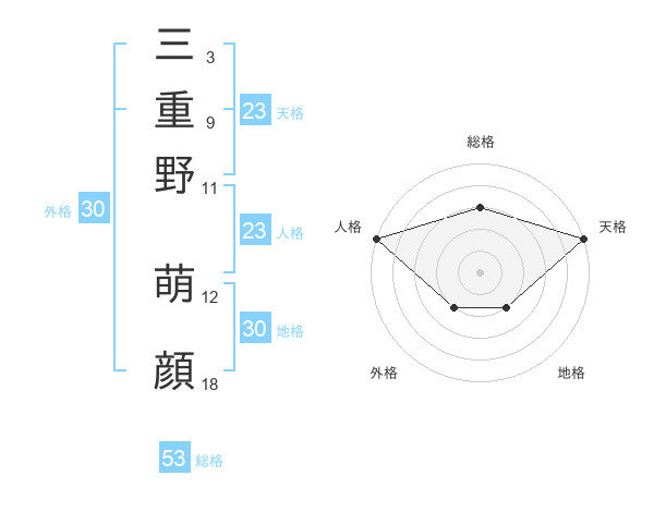 三重野 萌顔さんを姓名の画数から五運を鑑定
