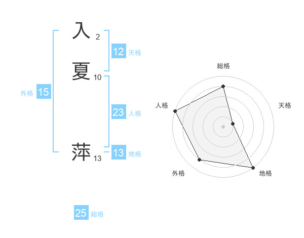 入夏 萍さんの総格は25画の4点!