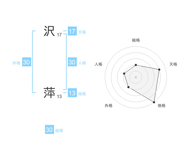 沢 萍さんの総格は30画の2点!