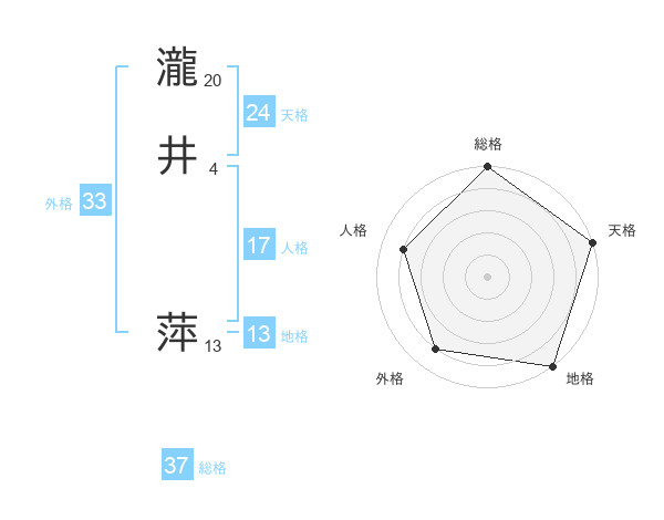 瀧井 萍さんを姓名の画数から五運を鑑定