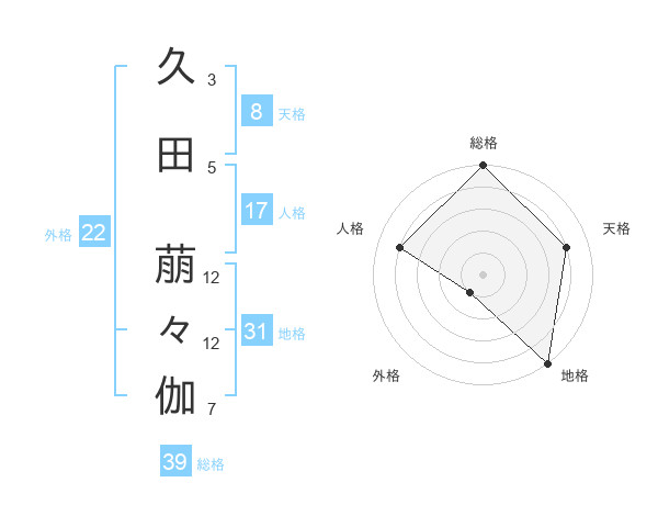 久田 萠々伽さんを姓名の画数から五運を鑑定