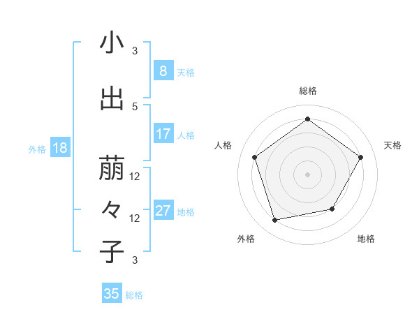 小出 萠々子さんの天格は8画の4点!