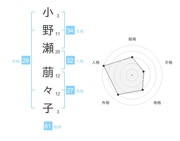 小野瀬 萠々子さんを姓名の画数から五運を鑑定