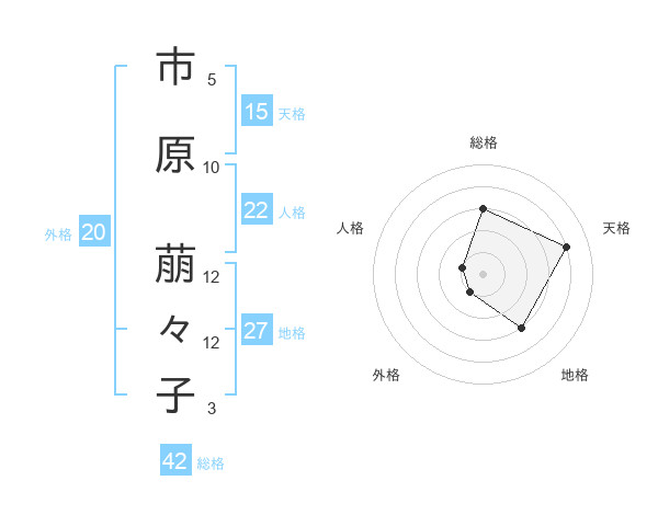市原 萠々子さんを姓名の画数から五運を鑑定