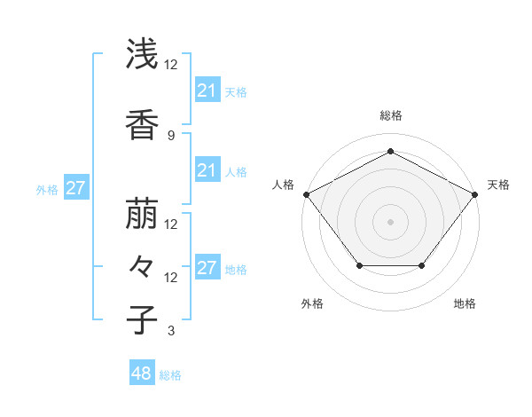 浅香 萠々子さんの天格は21画の5点!