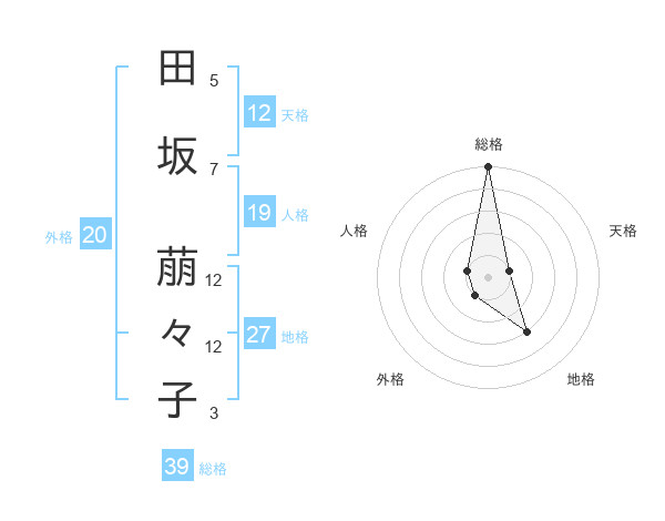 田坂 萠々子さんを姓名の画数から五運を鑑定