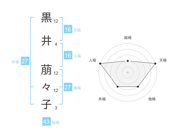 黒井 萠々子さんを姓名の画数から五運を鑑定
