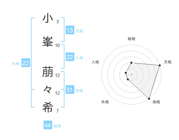 小峯 萠々希さんを姓名の画数から五運を鑑定