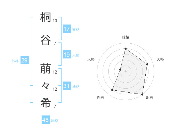 桐谷 萠々希さんを姓名の画数から五運を鑑定