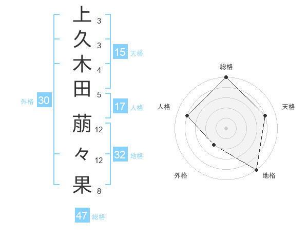 上久木田 萠々果さんの総格は47画の5点!