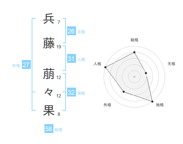 兵藤 萠々果さんの外格は27画の3点