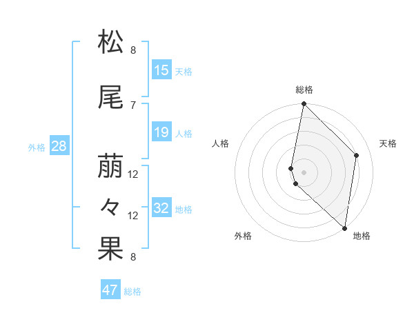 松尾 萠々果さんを姓名の画数から五運を鑑定