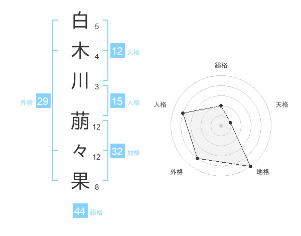 白木川 萠々果さんの総格は44画の2点!