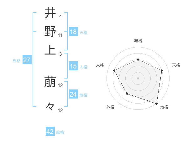 井野上 萠々さんを姓名の画数から五運を鑑定