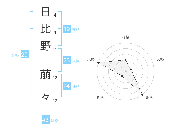 日比野 萠々さんを姓名の画数から五運を鑑定