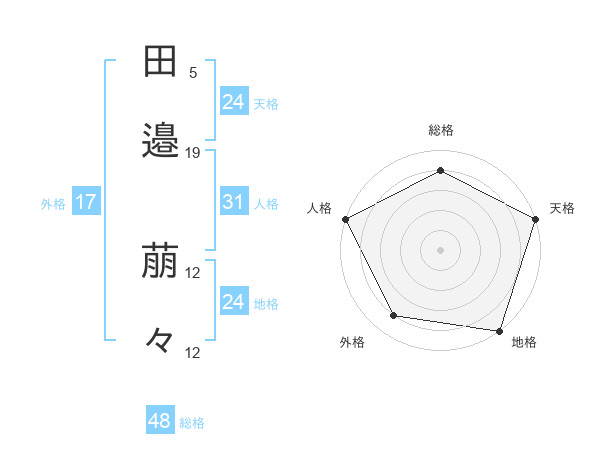 田邉 萠々さんを姓名の画数から五運を鑑定