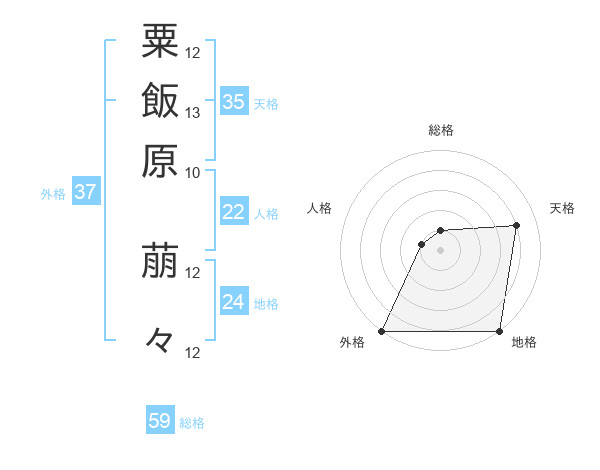 粟飯原 萠々さんを姓名の画数から五運を鑑定