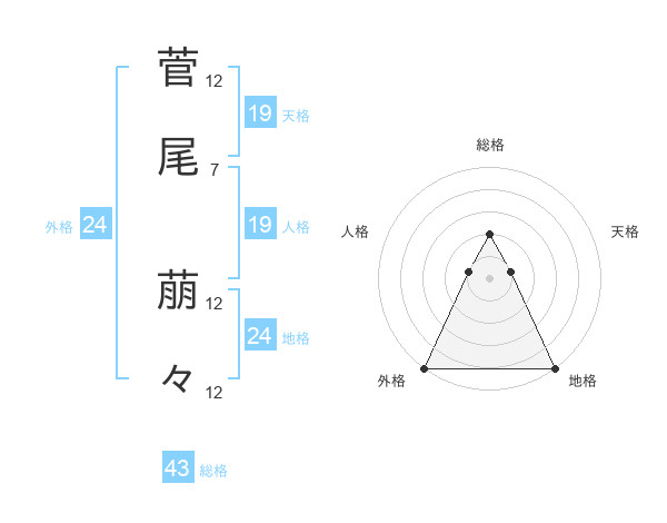 菅尾 萠々さんの総格は43画の2点!