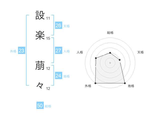 設楽 萠々さんを姓名の画数から五運を鑑定