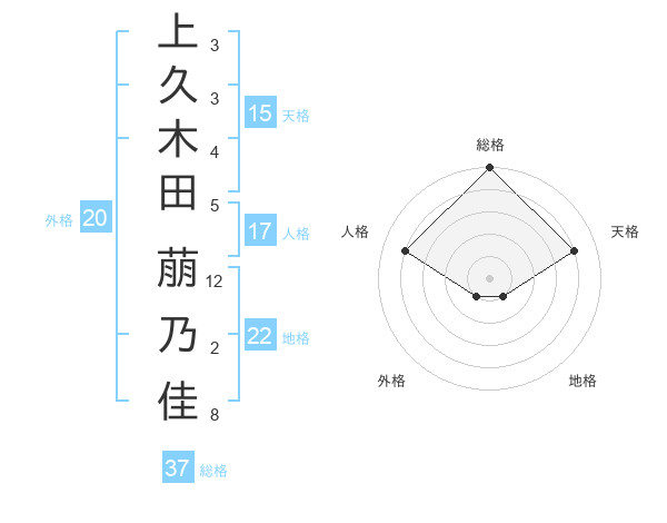 上久木田 萠乃佳さんの総格は37画の5点!