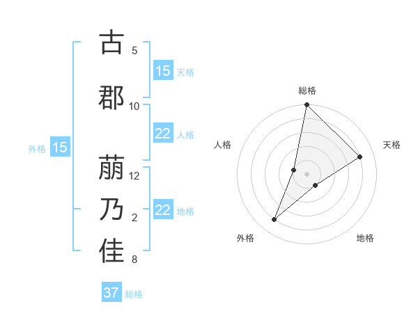 古郡 萠乃佳さんの総格は37画の5点