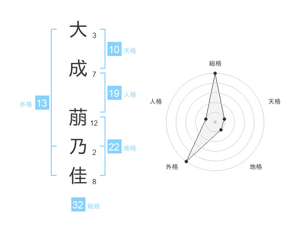大成 萠乃佳さんを姓名の画数から五運を鑑定