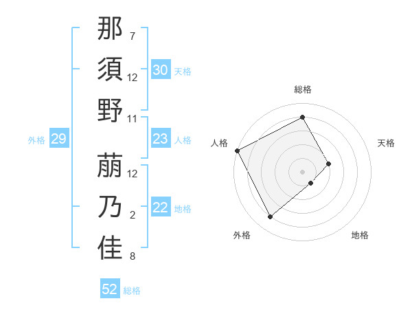 那須野 萠乃佳さんを姓名の画数から五運を鑑定