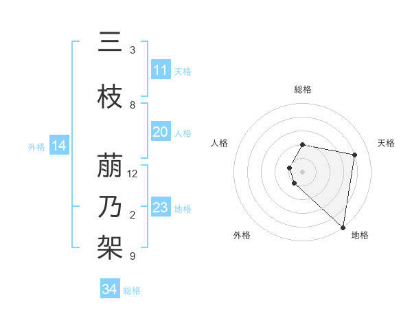 三枝 萠乃架さんを姓名の画数から五運を鑑定